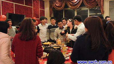 年會總結(jié)表彰結(jié)束后,公司全體員工歡聚一堂,共進年會晚餐。晚宴上大家共同舉杯暢飲,晚宴上一片歡聲笑語。隨后,公司全員一起去K歌,并且各自表演自己的才藝。整個年會在激烈,和諧、溫馨的氣氛中圓滿結(jié)束。